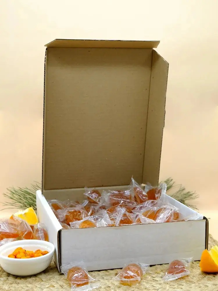 Это очень вкусный, а самое главное полезный и оригинальный подарок для себя и своих близких. Мармелад натуральный желейный на яблочном пектине с соком облепихи, тыквенным пюре, натуральным апельсиновым маслом.